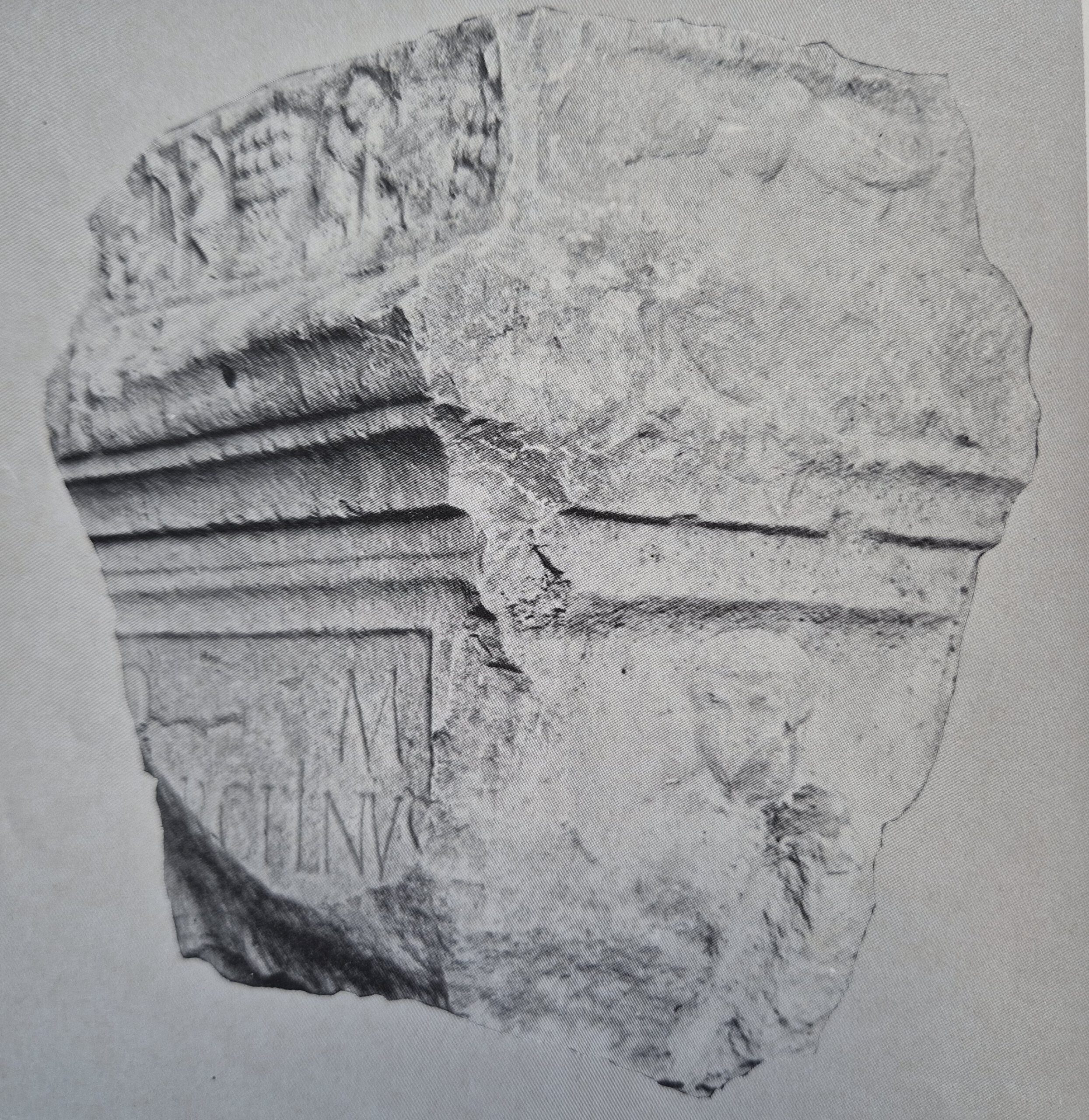 Der reich verzierte Grabstein könnte von den Angehörigen der römischen Gutshöfe (Villa rustica) in Kay/Mühlham oder Ramsdorf gestiftet worden sein und ist in das frühe 3. Jahrhundert zu datieren, wie Erwin Müller (1) vermutet. Die noch vorhandene Inschrift lautet: D(is) M(anibus) (Ma)RCELINUS, was übersetzt „Den Göttern der Unterwelt Marcelinus“ ….. bedeutet.