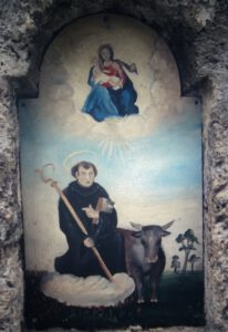 Das an der Ostseite angebrachte Bild des Hl. Ulrichs erinnert wie der Straßenname an die abgebrochene Sallinger Kirche, die dem Heiligen Ulrich geweiht war. Sie ist im Hintergrund abgebildet. Die anderen Darstellungen zeigen die Mutter Maria und eine Kreuzigungsgruppe. Auf dem vierten Bild ist der Heilige Leonhard abgebildet, dem Patron des Viehs. Es nimmt auch Bezug auf die ehemaligen Leonhardi-Wallfahrten in Meggenthal (3). Die Bilder sind seit ihrer letzten Renovierung mittlerweile wieder stark verwittert und dem Verfall preisgegeben.